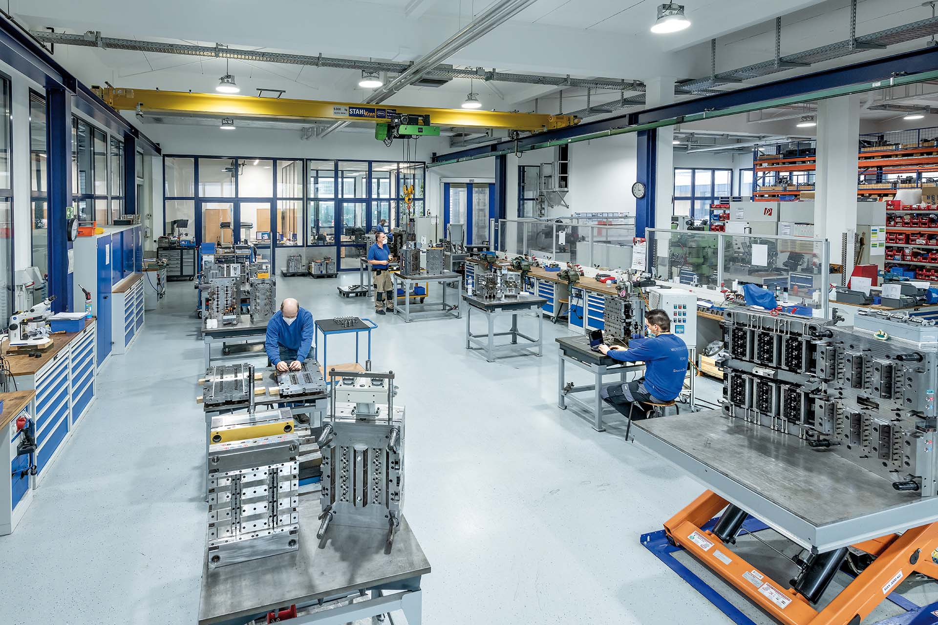 Unser Werkzeugbau konstruiert und baut Vor-Serienwerkzeuge, Präzisionswerkzeuge bis 3.5 Tonnen, 2K Werkzeuge und Silikonwerkzeuge.